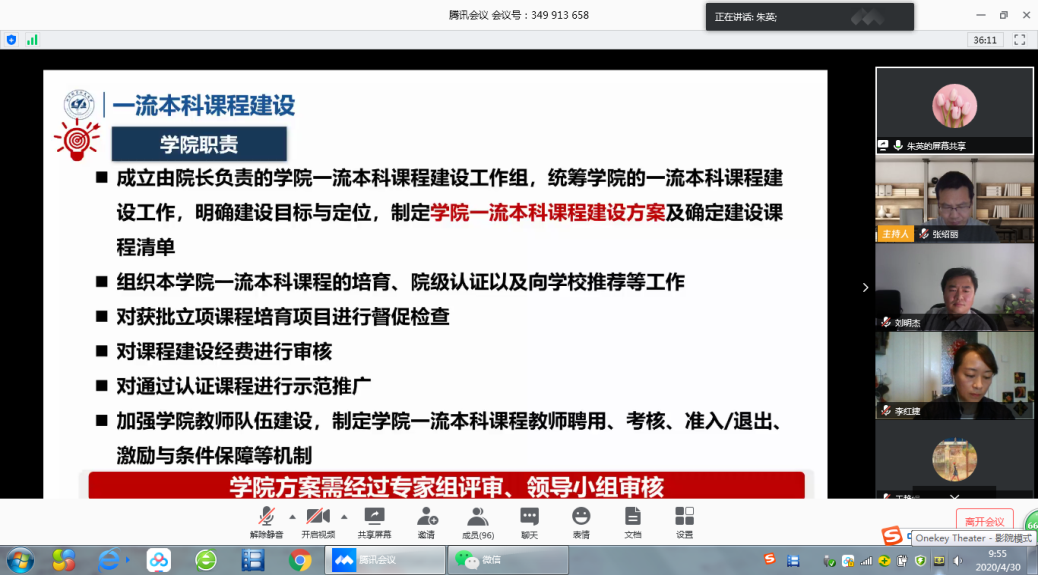 朱英介绍了学校一流本科课程建设方案,并就william威廉亚洲官方的具体安排做了说明。学院第一时间成立了一流本科课程建设工作组、院级认证专家组,并就学院方案制定及院级课程立项时间做了统筹部署,动员各位老师积极参评,把握时机。同时,朱英就学校、学院学期课程考核安排预案做了汇报。