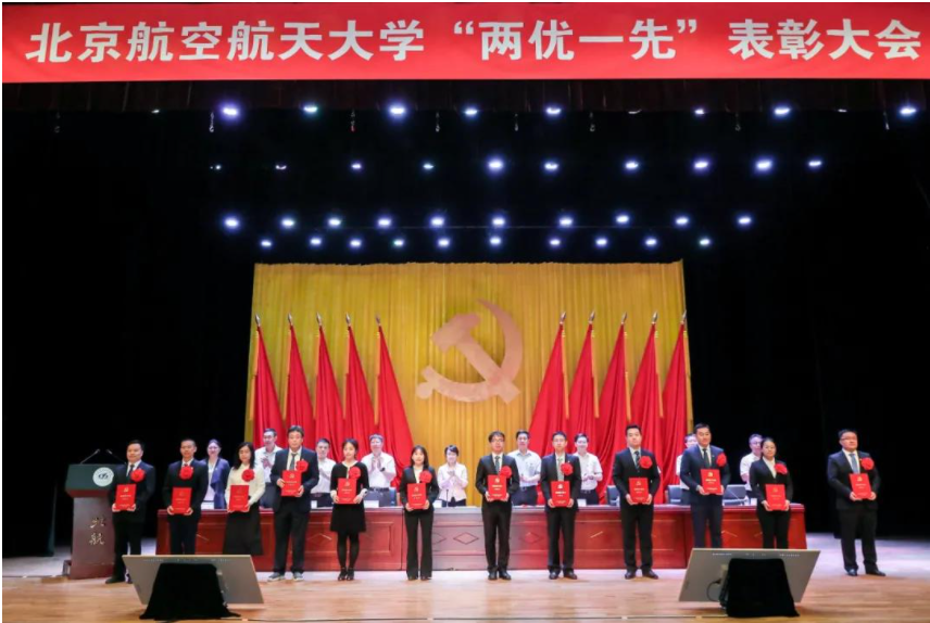 6月23日下午,我校在晨兴音乐厅召开优秀共产党员、优秀党务工作者和先进基层党组织(即“两优一先”)表彰大会。共有100名共产党员获得“优秀共产党员”称号、49名党务工作者获得“优秀党务工作者”称号、46个基层党组织获得“先进基层党组织”称号。主席台领导为受表彰代表颁奖,为老党员代表颁发“光荣在党50周年”纪念章。